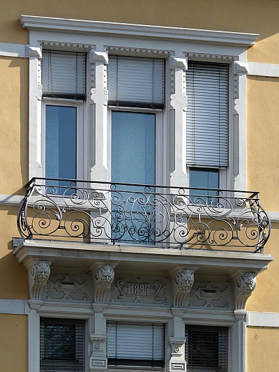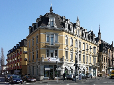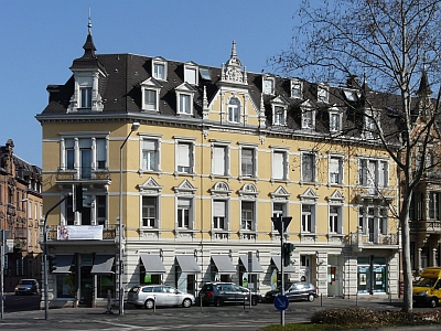 Besonders aufwändig gestaltete Fassade, die den Boulevardcharakter des Alleenrings zu unterstützen sucht. [1]