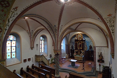 Spätgotischer Bau von 1511. 1840 erweitert. Hochaltar von 1735. Kanzel und Beichtstuhl aus dem Rokoko. [1]