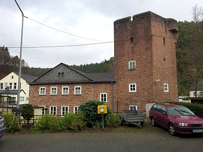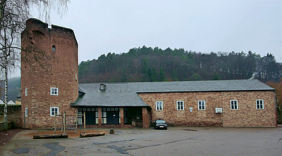 1936 / 37 als "Staatsjugendheim" auch Haus der NSDAP und Großheim der HJ genannt, nach Plänen des Leiters des städtischen Hochbauamtes Heinrich Otto Vogel und E. Winklers errichtete Gebäude. Aus kleinen roten Sandsteinquadern gebaute Mehrzweckhalle mit verschiefertem Satteldach, dem ein bergfriedartiger viergeschossiger Turm auf fünfeckigem Grundriss mit Zinnenabschluss und Erkerstumpf beigestellt ist. […]