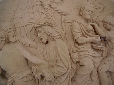 14 neugotische Stationsbilder, Sandsteinreliefs, bezeichnet 1869.