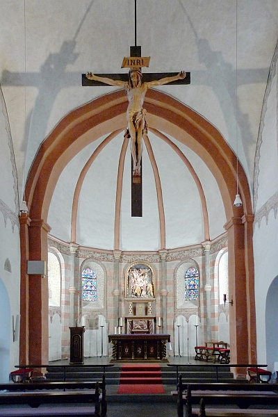 Die Klosterkirche entstand in ihrem ältesten Teil, dem südlichen Nebenschiff, zur Zeit der Klostergründung. Sie diente lange als Privatkapelle und Grablege der Herren von Kerpen. Das Hauptschiff, ein einschiffiger, verputzter Bruchsteinbau im Basilikenstil, ist um 1200 erbaut worden. Die westliche Hälfte des Nebenschiffes wurde zu Beginn des 16. Jahrhunderts mit einem neuen Kreuzgewölbe ausgestattet. Die Kirche besitz einen viergeschossigen Turm mit gekuppelten Rundbogenfenstern. Besondere Kostbarkeiten des Kircheninventars sind das spätgotische Chorgestühl (1530), die barocke Balthasar-König-Orgel (1715), ein Triumphkreuz aus dem frühen 16. Jahrhundert und beachtenswerte Bildwerke, darunter eine Holzfigur des Kirchenpatrons Sankt Leodegard.