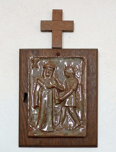 Die Kreuzwegstationen in Keramik stammen aus der Zeit nach dem 2. Weltkrieg.