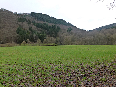 Das Langenfeld ist ein ausgedehntes Ackerfeld vom Fuß des Burgberges an bis zur Kyll.