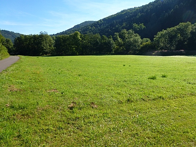 Flur 41 - Den letzten Zipfel zwischen Eckenberg und Daufenbacher Straße bildet die "Greigerwies", wohl nach einem frühen Besitzer benannt. Zwischen Kyll und Eisenbahn gegenüber liegt die Flur "Hinter Müllershaus", was bekannter in der Kordeler Sprache "hanna Mielisch-Hous" klingt. Das "Mielisch-Haus" ist das älteste Haus in Kordel, wenn man von den Grundresten der Brandruine der Mühle im Fronholzberg absieht. Das Haus in der "Hinnischtgaß" ist nach einer Steininschrift vermutlich 1488 bis 1489 von der Hofrentkammer als Müllerwohnung der erzstiftlichen Mühle und zur Verwaltung des Fronholzberges und der davor liegenden Achtländereien erbaut worden. Das Haus ist namengebender Orientierungspunkt für die Felder zur Kyll hin geblieben. So auch für "Hanfstücke hinter Müllershaus".