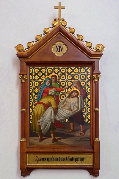 Sie ist ein ungewöhnlich eindrucksvoller Bau der Neoromanik. Den Eingang schmückt ein schönes Gewändeportal. Die weitläufige, dreischiffige Kirche wird von einem kreuzförmigen Gewölbe überspannt. Von den Fenstern ist das mittlere Chorfenster besonders prächtig ausgefallen. Es zeigt folgende Bilder: "Geburt Christi", "Moses am brenenden Dornbusch" und das "Opfer des Melchisedech". Der Hochaltar ist eine Arbeit aus der Zeit um 1900. Besonders schön im Retabel die Darstellungen vom"Opfer des Melchisedech" und dem "Paschafest". Darüber befinden sich Figuren der heiligen Barbara, der heiligen Elisabeth, des heiligen Petrus und des heiligen Johannes. Helmut Assion schuf 1990 den hölzernen Ambo. Sie zeigt die vier Kirchenväter Hieronymus, Gregorius, Augustinus und Ambrosius. Der alte Taufstein ist von 1682. Erwähnenswerte Holzstatuen: Mittelwand der Nordapsis: heiliger Rochus (um 1700), Ostwand der Südapsis: heiliger Joseph mit Kind (um 1680). Die Orgel ist ein Werk der Firma Klais (1949). [2]