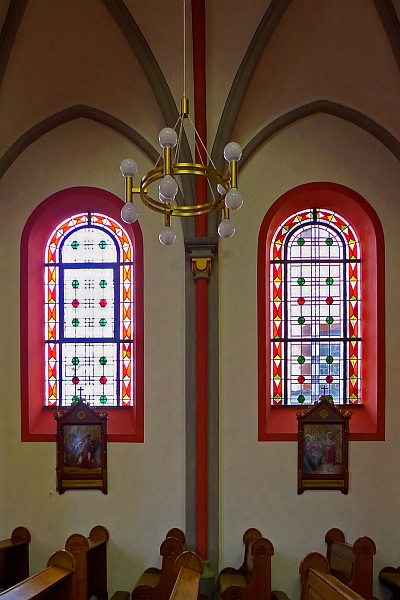 Durch Adam Rüppel, Bonn, 1897 erbaut. Neuspätromanische Basilika aus rotem Sandstein. [1]