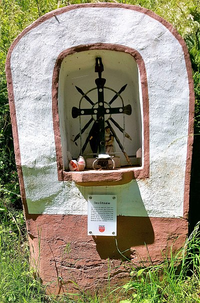 An der Straße nach Wittlich, etwas oberhalb der Wegekapelle. Rund geschlossener Mauerblock 18. / 19. Jahrhundert. [1]