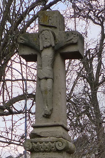 Das Äschenkreuz trägt das Steinmetzzeichen der Kyllburger Werkstatt.