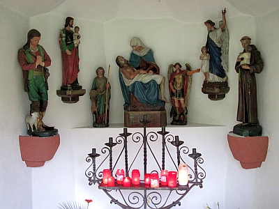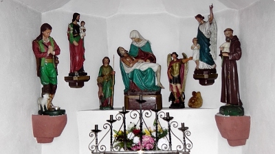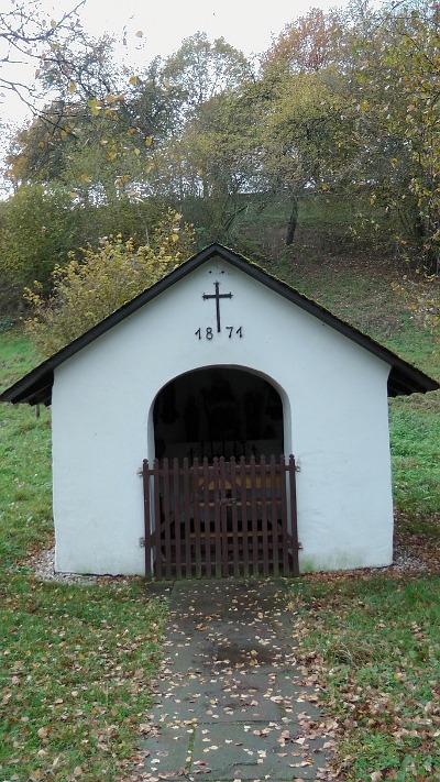 Die nach dem Krieg 1870 / 71 erbaute Kapelle mit altem Kachelfußboden weist in der figürlichen und bildlichen Ausstattung auf eine lebendige Volkstradition hin. [1]