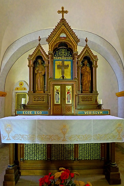 1513-1515 werden an die noch ältere Kirche ein Chor und die Sakristei angebaut, und die Balkendecke wird durch ein schönes gotisches Netzgewölbe ersetzt. Der Turm stammt aus dem Jahre 1545. Im Laufe der Jahrhunderte wurde die sogenannte "Wehrkirche" mehrmals durch Stürme oder Blitzeinschlag beschädigt. Links vom Chorbogen erblickt man eine Holzfigur des heiligen Leonhard (um 1750), auf der rechten Seite steht die heilige Barbara (um 1680). Eine Zierde für das altehrwürdige Gotteshaus sind mehrere schön geschnitzte Stuhlwangen.