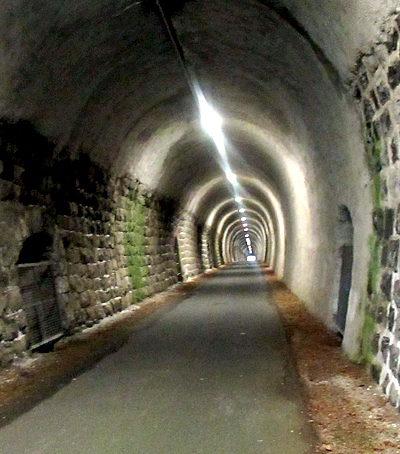 Er ist 560 m lang und damit der zweitlängste Tunnel, den man in Deutschland mit Fahrrädern befahren kann. Darum fällt auch kaum Tageslicht in die Tunnelmitte. Für Fußgänger und Radfahrer hat man deshalb Lampen eingebaut.