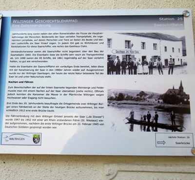 Die Fährverbindung mit dem Wiltinger Ortsteil jenseits der Saar ("dä Diwwer") wurde 1947 bis 1952 mit einer am Rhein erstandenen Fähre (St. Nikolaus) wieder aufgenommen, nachdem die erste Wiltinger Brücke am 22. Februar 1945 von Deutschen Soldaten gesprengt worden war. [2]