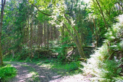 […] Ritterath griff daher die Anregung des Gewerberates von Trier aus dem Jahre 1855 auf, nämlich eine kürzeste Verbindung mit dem Tal und der eigenen Steinhauerei am Fuße des Butzerberges zu schaffen. Die Trasse sieht man heute [1982] noch nach fast 100 Jahren als schmale Schneise im hochgewachsenen Tannenwald im Hang des Butzerberges.
