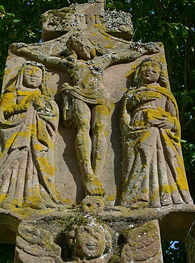 Vor der Kirche steht ein gut erhaltener, ungewöhnlich reich gestalteter Kreuzigungsbildstock im zugehörigen Fundamentstein. Nach alter Überlieferung wurde er 1620 von Gottfried Brand errichtet.