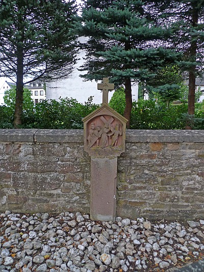 Auf der Süd- und Westseite des Friedhofs sowie östlich der Kirche mehrere Stationen eines Kreuzweges mit teilweise fast vollplastischen Reliefs. Der wohl im 19. Jahrhundert entstandene Kreuzweg verlief ehemals vermutlich am Talhang nordwestlich von Schönecken, da dort eine nahezu identische Station erhalten ist. [1]