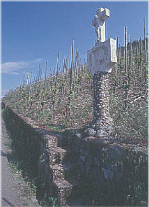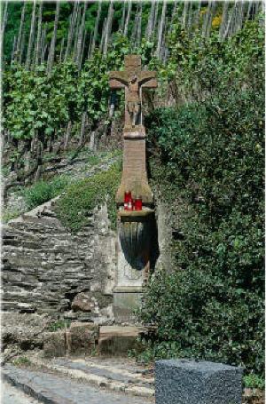 Betrachten wir die Verbandgemeindekarte mit den eingetragenen Standorten der Wegekreuze, so fällt uns die übergroße Dichte der Kreuze im Moseltal auf, insbesondere an der Moselstrecke zwischen Lieser und Lösnich. Alle diese Kreuze sind Steinkreuze..., die selten über 300 Jahre alt sind und von kundiger Meisterhand geschaffen wurden. Die Steinkreuze sind mit Inschrift und Jahreszahl ausgestattet, auf dem Schaft sind Hausmarken und Wappenschilde ausgehauen, ein kunstvoll gearbeiteter Corpus ziert das Abschlusskreuz und oft sind Schaft und Seitenteile mit stilvollen Blatt- und Linienverzierungen versehen.