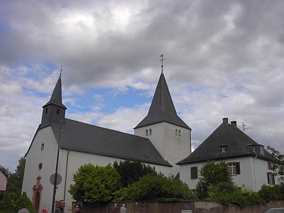 Die Kirche wurde 1814 noch ganz in der Nachfolge schlichter Barockkapellen des Trierer Landes errichtet. Der 1945 schwer beschädigte Kirchenbau wurde 1960 nach Plänen von Heinrich Otto Vogel (Trier) um eine Achse anstelle des dreiseitigen Chorschlusses und um den massigen, von der Romantik inspirierten Chorturm mit achtseitiger Schieferpyramide erweitert.
