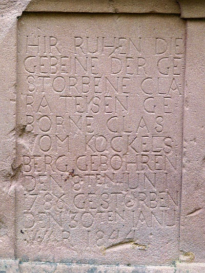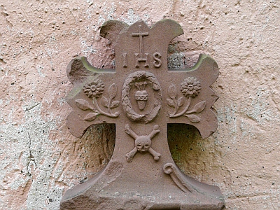 An der Kirchenwand nachbarockes Grabkreuz C. Theisen († 1844).