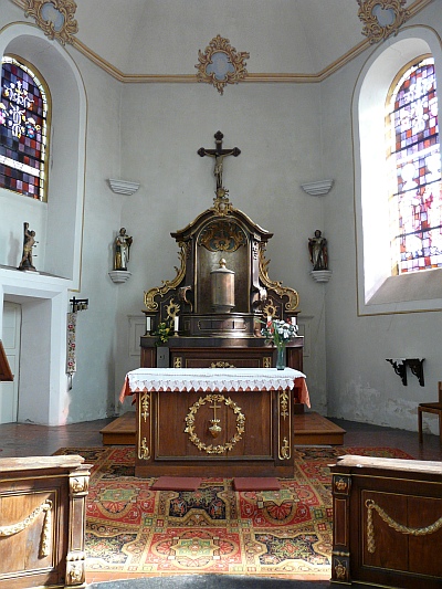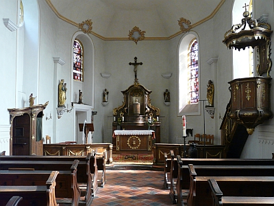 1786 erbaut und 1881 um eine Achse verlängert. Reste der barocken Ausstattung erhalten. [1]