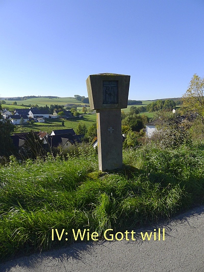 14 Bildstöcke aus Sandstein (Höhe 1,60 m) bilden den Kreuzweg von der Kirche bis zur Votivkapelle auf Wahlhausen. Am 22.4.1943 wurden diese Stationen, zum größten Teil an derselben Stelle des alten Kreuzweges, von Pfarrer Franz Brühl "zum Andenken an die Gefallenen des Krieges" eingesegnet. Die ursprünglichen Nischenbilder wurden in den 1990er Jahren durch moderne Bronzereliefs des Adenauer Künstlers Georg Gehring ersetzt. [1] [2]