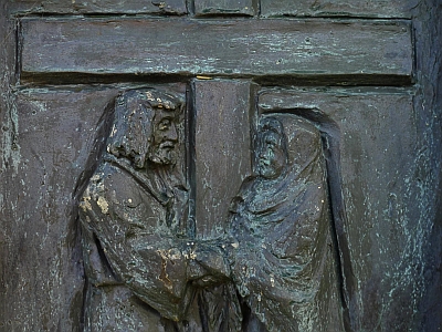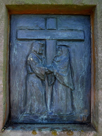 Auf einem dem Friedhof gegenüberliegendem Tufffelsen steht ein 1,63 m hohes Nischenkreuz aus vulkanischem Tuff (17. Jahrhundert), das den Anfang der früheren Kreuzwegstationen darstellen soll.