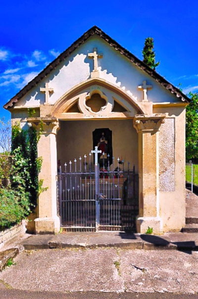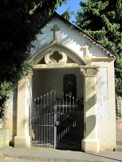 Das westliche Dorfende am Flußufer markierender, rechteckiger Putzbau unter schiefereingedecktem Satteldach. Herausgehoben ist die Fassade durch ein neugotisches Sandsteinportal mit durchbrochenem, flachbogigem Tympanon und fialartigen Kreuzaufsätzen. An der Bogenstirn die Widmung Sancta Maria und die Bauzahl 1897.