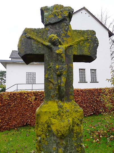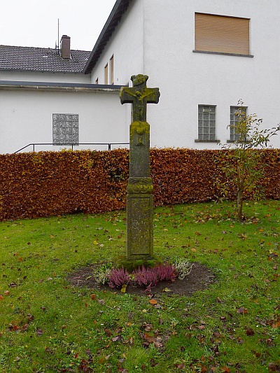 Westlich des Eingangs [zur Kirche] ein nachbarockes Schaftkreuz in neuer Aufstellung.