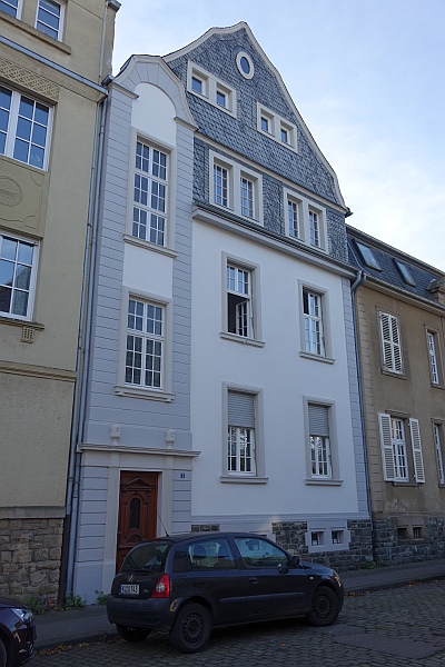 1911 nach Plänen von Julius Wirtz vom Baugeschäft Weis und Eitzmann errichtetes Mietshaus im barockisierenden Heimatstil. [...] Straßenbildbestimmender Bau. [1]