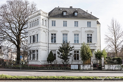 Große Walmdach-Villa, dreigeschossiger Winkelbau, Neurenaissance, 1873, Anbau des zweigeschossigen Wintergartens 1919; zugehörig Garten mit bauzeitlicher Einfassung. [1]