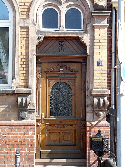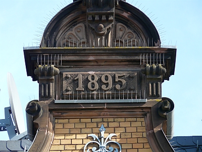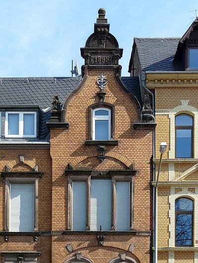 Späthistoristisches Wohnhaus, sandsteingegliederter Klinkerbau, Neurenaissancemotive, 1895. [1]
