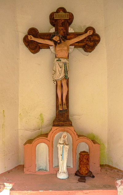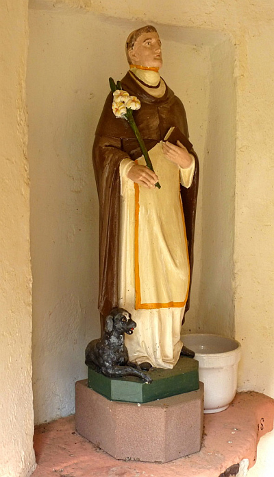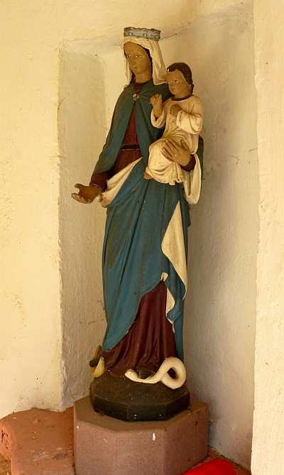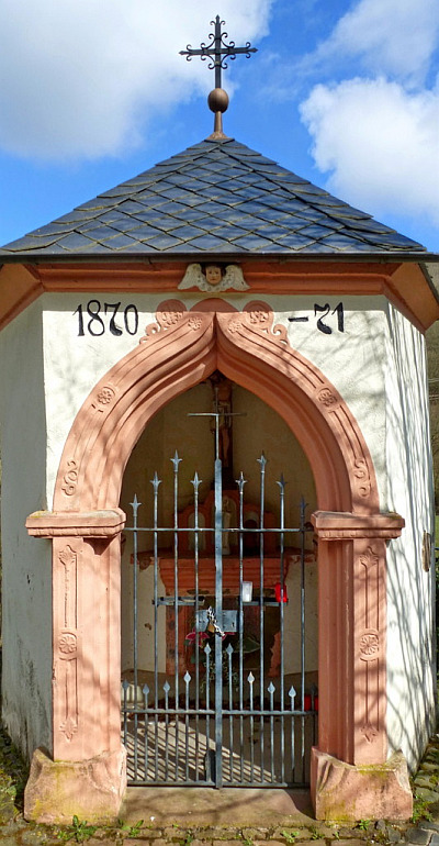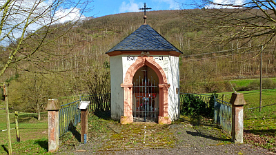 Kapelle an der Straße Alte Spein im Bachtal des Büster Baches, östlich der Ortslage. Von Linden eingefasster sechseckiger Grundriss. Die innen flachgedeckte Wegekapelle öffnet sich in einem kielbogigem Sandsteinportal, darüber die sie als Kriegsgedächtniskapelle ausweisende Jahreszahl 1870-71. Im Inneren ein zeitgleicher Kreuzaltar, seitlich Konsolen ehemals für Rosenkranzmadonna und heiligem Dominikus. In der intakten äußeren Einheit aus Kapellchen, Bäumen und Einfriedung ist die der Verehrung des Rosenkranzes gewidmete Stätte von selten erhaltener Vollständigkeit. [1]