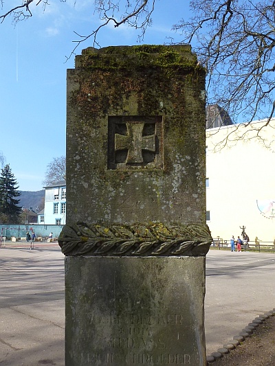 In den Schulhof eingebunden wurde eine von der vorangegangenen Anlage überkommene Baumgruppe mit einem an die Gefallenen des Ersten Weltkriegs erinnernden Ehrenmal. [1]