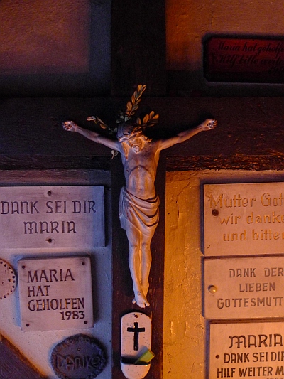 Das zweite Wahrzeichen an der alten Wallfahrtsstraße, das Pilgerkreuz, steht einige Hundert Schritte unterhalb des Bildstocks am Waldausgang. In Sandstein eingraviert, steht auf ihm zu lesen: