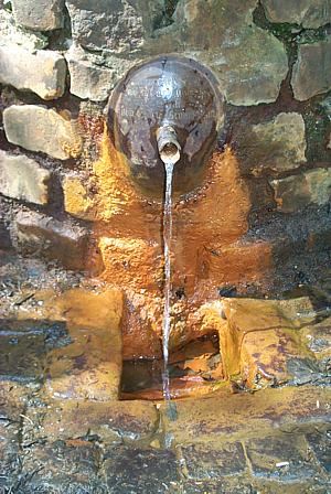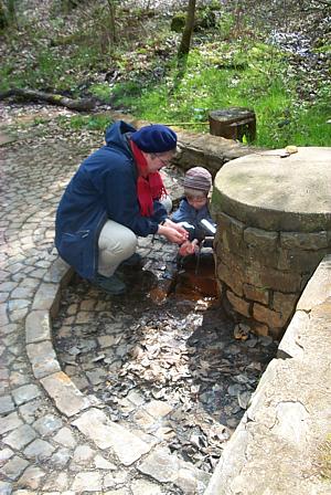 Diese Quelle, die aus den devonischen Schichten des Hochwaldes gespeist werden soll, bietet ein stark eisenhaltiges, kohlensaures Mineralwasser. Die Rotfärbung durch das Eisenoxyd ist in der Umgebung des Brunnens unübersehbar. Trinkspruch am Brunnen: Wer Rast und Muße hat, der trink´ sich an diesem Brunnen satt.