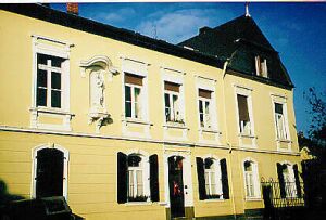 Erwerb des säkularisierten Gutes durch den Trier Bierbrauer Gustav van Volxem wurde das Hofgebäude aufgestockt und schließlich 1899 um einen, die Fassadenlinie beibehaltenden giebelständigen Anbau erweitert und, den Bestand einbeziehend, in neubarocken Formen zu einem einheitlichen Ganzen überformt. Der breitgelagerte Putzbau unter schiefereingedecktem Krüppelwalmdach ist an seiner langezogenen Fassade im Erdgeschoss putzgebändert und vom hohen Obergeschoss durch ein Gesims abgesetzt. Darauf stehen die in drei weit- und drei enggestellten Achsen verteilten Rechteckfenster mit angedeuteten Ohrungen, gelängt von Brüstungen und Gebälkverdachung auf Konsölchen. Das profilierte Kranzgesims mit Zahnschnitt. Zwischen den Fenstergruppen und die Mitte der Front akzentuierend eine Hausmadonna in bewegt ausgreifender Baldachinarchitektur sowie eine verschieferte Laterne mit welscher Haube.