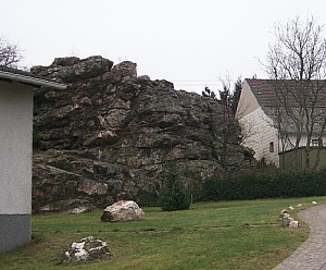 In der Straße Zum Felsen liegt ein haushoher Felsblock wie ein gestrandetes Urtier inmitten der Wohnanlage und er rührt sich seit Jahrmillionen nicht vom Fleck.