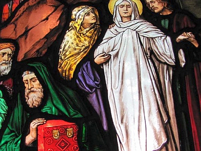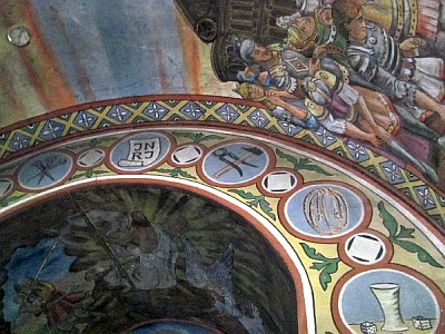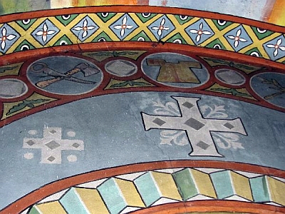Die großen Langbilder im Gewölbe zeigen Szenen aus der Geschichte der Thebäischen Legion, die auf Befehl des römischen Kaisers Maximilian zur Christenverfolgung eingesetzt werden sollte. Als die in Trier stationierten Hauptleute Binifatius und Thyrsus sich weigerten, wurden diese und ihre Gefolgsleute hingerichtet. [2]