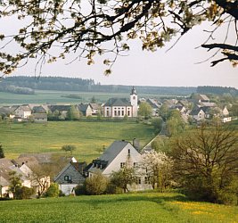 Frühklassizistischer Zentralbau von 1789/90 nach Plänen des herzoglich zweibrückischen Baumeisters Friedrich Gerhard Wahl mit originaler Ausstattung und Stumm-Orgel von 1809, der Glockenturm im Kern frühromanisch.