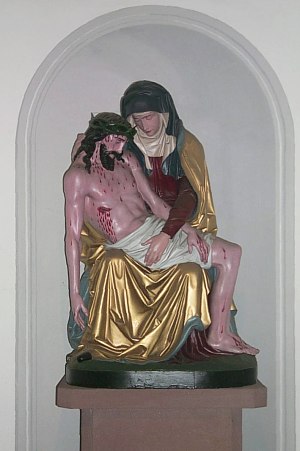 Kleiner Satteldachbau mit Vorhalle, 1860; im Innern Pietà, spätes 19. Jahrhundert und barocker Nischenbildstock.