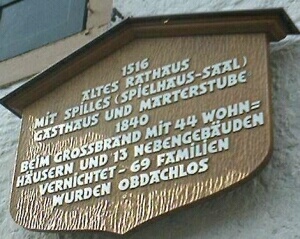 Rathaus von 1516 mit Spilles (Spielhaus-Saal) Gasthaus und Märterstube. 1840 beim Grossbrand mit 44 Wohnhäusern und 13 Nebengebäuden vernichtet - 69 Familien wurden obdachlos.