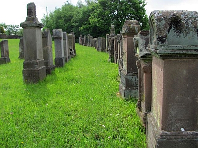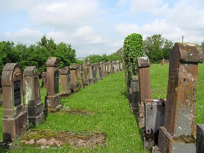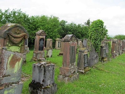 Am Abhang eines Ausläufers des Eiderberges und am nördlichen Rand der alten Ortslage (d. oberhalb des Ortskerns) gelegen. Von der Strasse in Richtung Taben-Rodt beschildert. Der weiträumige und dicht belegte Friedhof mit Grabmälern vom 19bis in die frühen 1930er Jahre lässt die ehemalige Größe und Bedeutung der jüdischen Gemeinde erkennen. An bevorzugten Grabmaltypen überwiegen die Stele, das Pfeilerpostament und der Cippus aus heimischem, roten Sandstein.