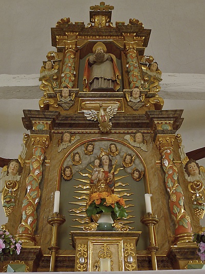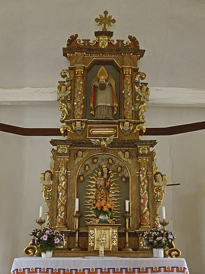 Dreiachsiger Saalbau, bezeichnet 1751; Gesamtanlage mit Kirchhof und Umfriedungsmauer. [1]