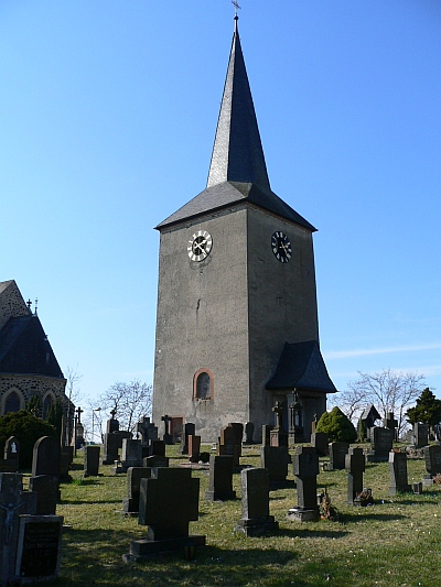 Im Kern mittelalterlicher Turm der 1729 errichteten, Ende des 19. Jahrhunderts abgebrochenen Kirche. [1]