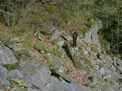 Fuchsröhre: die kleinere der beiden Felshalden. Der Name rührt von Fuchsbauten in der Nähe her und geht ebenfalls auf den Eifelverein zurück.