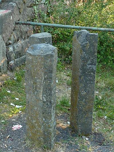 An der Umfassungsmauer des Friedhofs tritt die Lava in großen, durch den Straßenbau freigelegten Blöcken zutage.