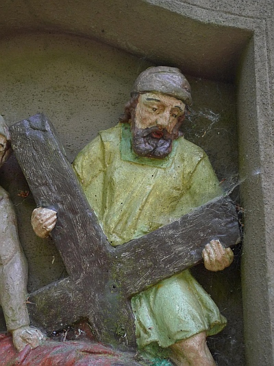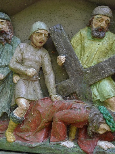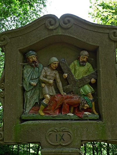 Es war bewundernswert mit welcher Bereitwilligkeit und Eigeninitiative Wege angelegt, der Platz mit dem Kreuz ausgebaut, Bäume und Sträucher gepflanzt und schließlich die Stationen des Kreuzweg aufgestellt wurden. Sie stammen aus der Werkstatt von Karl Müller, Burgjoss im Spessart. So konnte dieses Gemeinschaftswerk der Pfarrei Eschfeld rechtzeitig vor der Karwoche fertiggestellt und am Palmsonntag, den 12.04.1992 in einer großen Feier eingeweiht werden. "Möge den Betern des Kreuzweges die Frucht der Erlösungsgnade unseres Herrn in reiche Maße zuteil werden" -Mit diesen Worten hatte Bischof Spital die Errichtung dieser Gebetsstätte gut geheißen. Seither treffen sich die Pfarrangehörigen der Seelsorgeeinheit hier immer wieder zu Gebetsgottes-diensten, und viele Besucher aus nah und fern verweilen eine Zeit am "Kreuzweg an der Bunkerdecke" . Peter Marx, der auch den Friedhof der Pfarrei und den Ehrenfriedhof betreut, pflegt die Anlage.