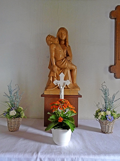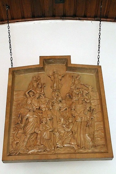 Holzrelief der 14 Nothelfer. An der Autobahnauffahrt Waxweiler. [2]