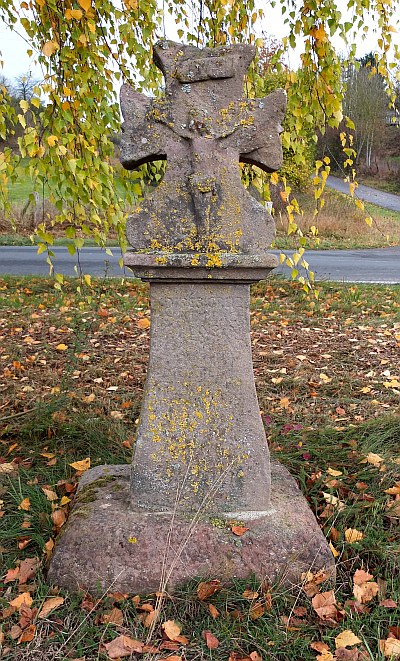 Schaftkreuz, bezeichnet 1885, Abschlusskreuz wohl noch aus der zweiten Hälfte des 18. Jahrhunderts. [1]