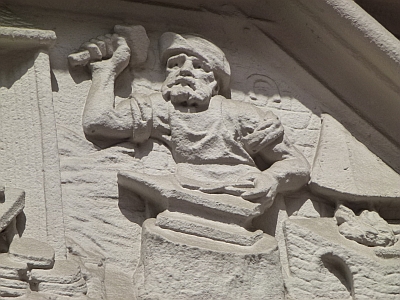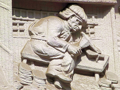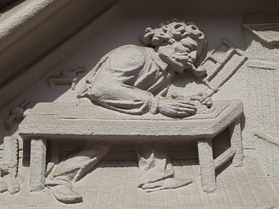 Noch dem Späthistorismus verpflichtet, wird das dreigeschossige Traufenhaus mit sandsteingegliederter Putzfassade, durch malerisch-unregelmäßige Akzentsetzungen belebt. Blickfang in der Dachzone ist ein seitliches, großvolumiges und in zwei Geschossen durchfenstertes Zwerchhaus mit Krüppelwalm. Die der Gotik und der deutschen Renaissance entlehnten Formzitate konzentrieren sich am Erker und am aufwendig verzierten, sandsteinsichtigen Erdgeschoss. Ein religiöser Sinnspruch und Portalwappen mit den Bildnissen des heiligen Petrus und heiligen Laurentius sollen als Bekenntnis des Bauherrn zum christlichen Glauben verstanden werden. Auf den Namen des Bauherrn verweisen die Initialen eines Erkerwappens, auf seinen Beruf prächtige Reliefs der Parterrefensterstürze mit mittelalterlichen Bauszenen. Sie geben dem Bau ein altdeutsches Gepräge. [1]