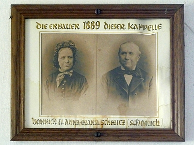 In den Jahren 1875-1885 wütete in Lissendorf die Diphterie. Die Familie Schmitz hatte 4 Kinder, von denen 2 hieran starben. Die Familie war sehr gottesfürchtig und Herr Schmitz hatte ein Versprechen gegeben, falls ihm seine beiden noch verbliebenen Kinder am Leben blieben, zu Ehren der Mutter Gottes eine Kapelle zu errichten.